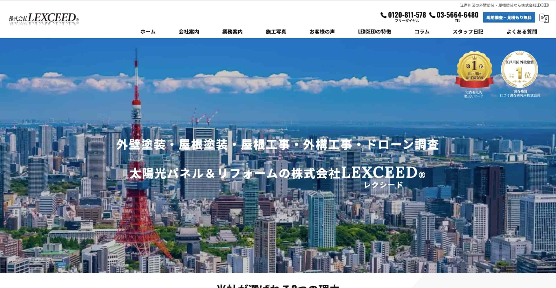æ ªåŒäŒç€ŸLEXCEEDã¯ãæžå»ºäœå® ãäžå¿ãšããå€å£å¡è£ ãäž»è»žäºæ¥ãšãããªãã©ãŒã äŒç€Ÿã§ããå€å£å¡è£ ã»å±æ ¹å¡è£ ã»é²æ°Žå·¥äºã»å±æ ¹æ¹ä¿®ã»å€æ§å·¥äºãŸã§å¹ åºãåãæ±ã£ãŠããŸããã客æ§ãšã®å¯Ÿè©±ãéèŠãã驿£ãã€éæãªäŸ¡æ Œæç€ºãè¡ã£ãŠãããçµéšè±å¯ãªè·äººã責任ãæã£ãŠæœå·¥ãè¡ããäžå¯§ããšé«å質ã远æ±ããŠããŸãããŸããæœå·¥åã®èª¿æ»ã«ã¯ãããŒã³ã掻çšãããªã©ãå®å šæ§ãšå¹çæ§ã«ãé æ ®ããŠããŸãã