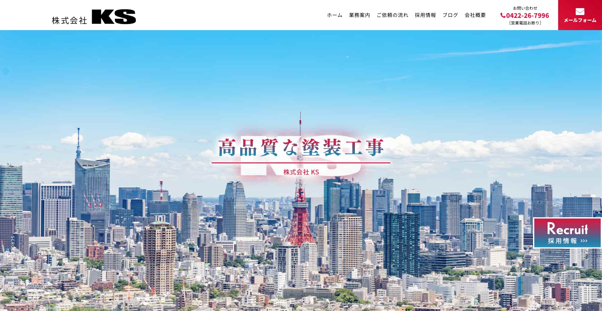 æ ªåŒäŒç€ŸKSã¯ãæ±äº¬éœã»åŒççã»ç¥å¥å·çããµãŒãã¹ãšãªã¢ãšããŠãå€å£å¡è£ ãäžå¿ã«å è£ å¡è£ ã鲿°Žå·¥äºãã·ãŒãªã³ã°å·¥äºãªã©ãææããå¡è£ å·¥äºã®ãããã§ãã·ã§ãã«ã§ããæ¥çæŽ23幎ã®ä»£è¡šãã¯ãããçµéšè±å¯ãªè·äººãåšç±ããŠããããããŸã§å¹ã£ãŠããè±å¯ãªç¥èãšæè¡ã«åºã¥ããäžå¯§ã§é«åè³ªãªæœå·¥ããå±ãããŠããŸãã