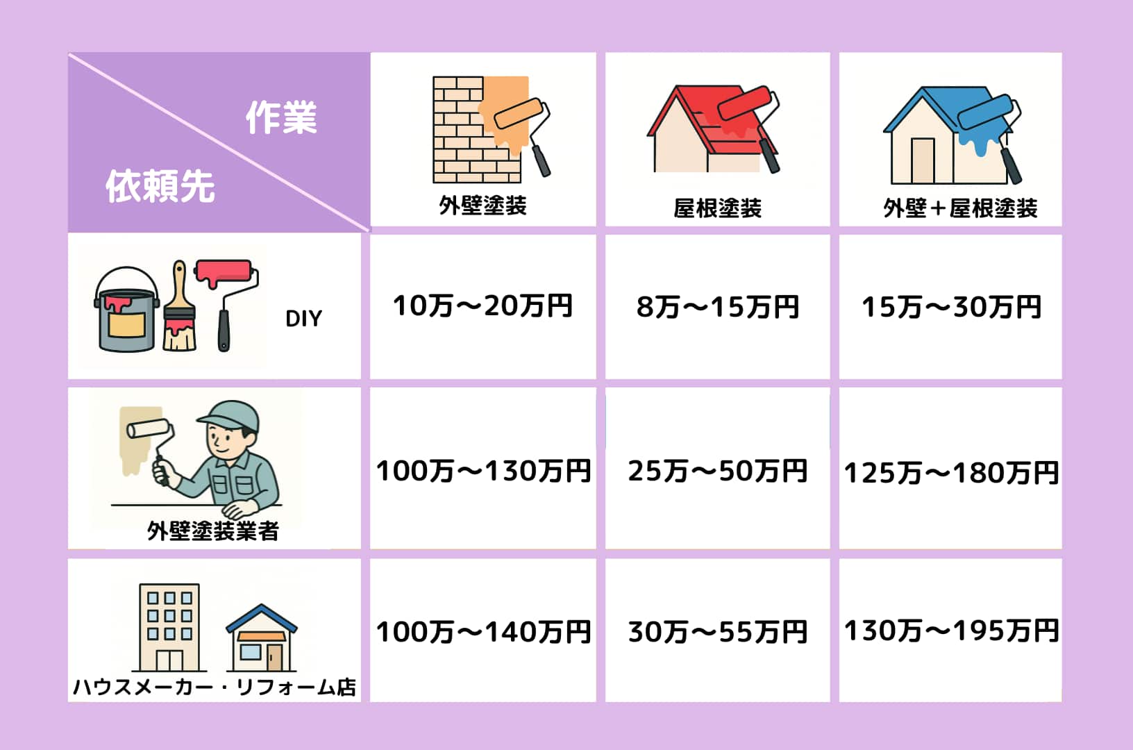 å€å£å¡è£ ã®è²»çšã¯ãäŸé Œå ãå¡è£ é¢ç©ã䜿çšãã塿ã®çš®é¡ãªã©ã«ãã£ãŠå€§ããç°ãªããŸããäž»ãªäŸé Œå ã§ãããDIYããå€å£å¡è£ æ¥è ããããŠã¹ã¡ãŒã«ãŒã»å€§æãªãã©ãŒã äŒç€Ÿãã®3ã€ãåºæºã«è²»çšçžå Žãç¹åŸŽãæ¯èŒããŠã¿ãŸãããã